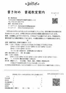 「書初め練習会」 日程決定致しました! 会場は常盤平教室&稔台市民センターで行います。